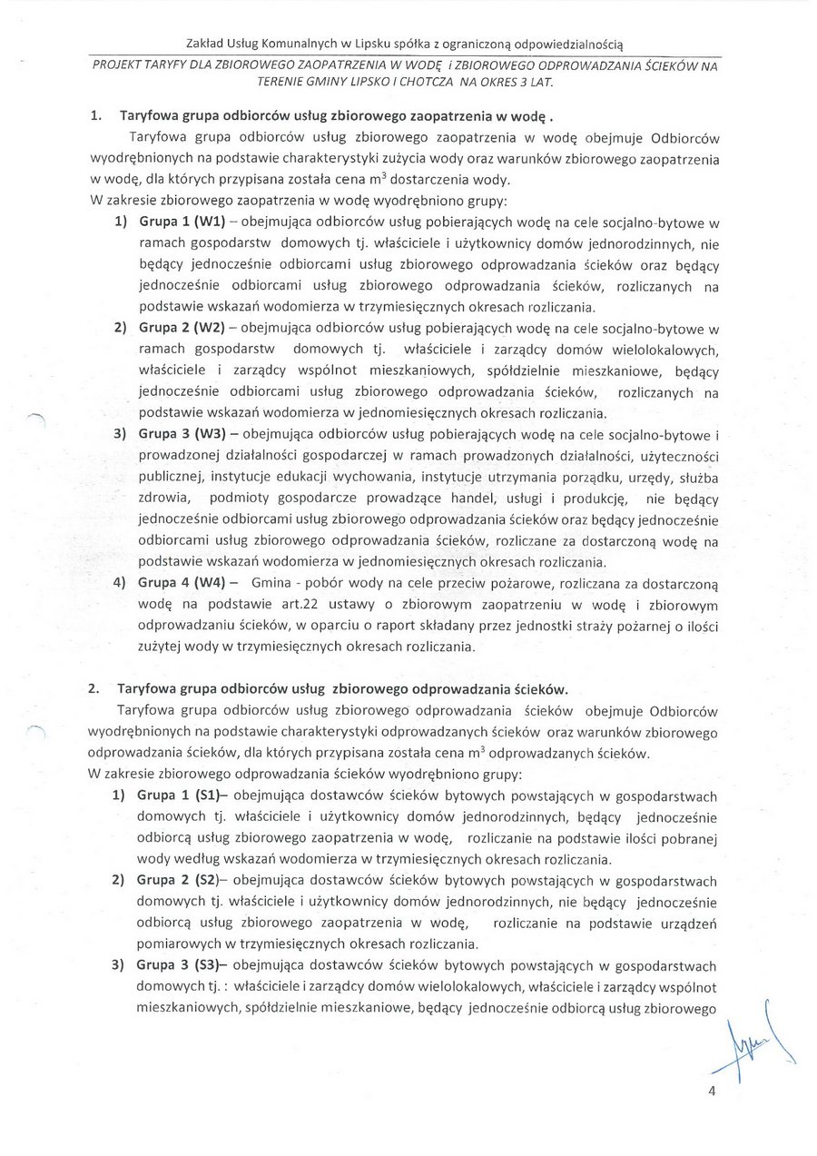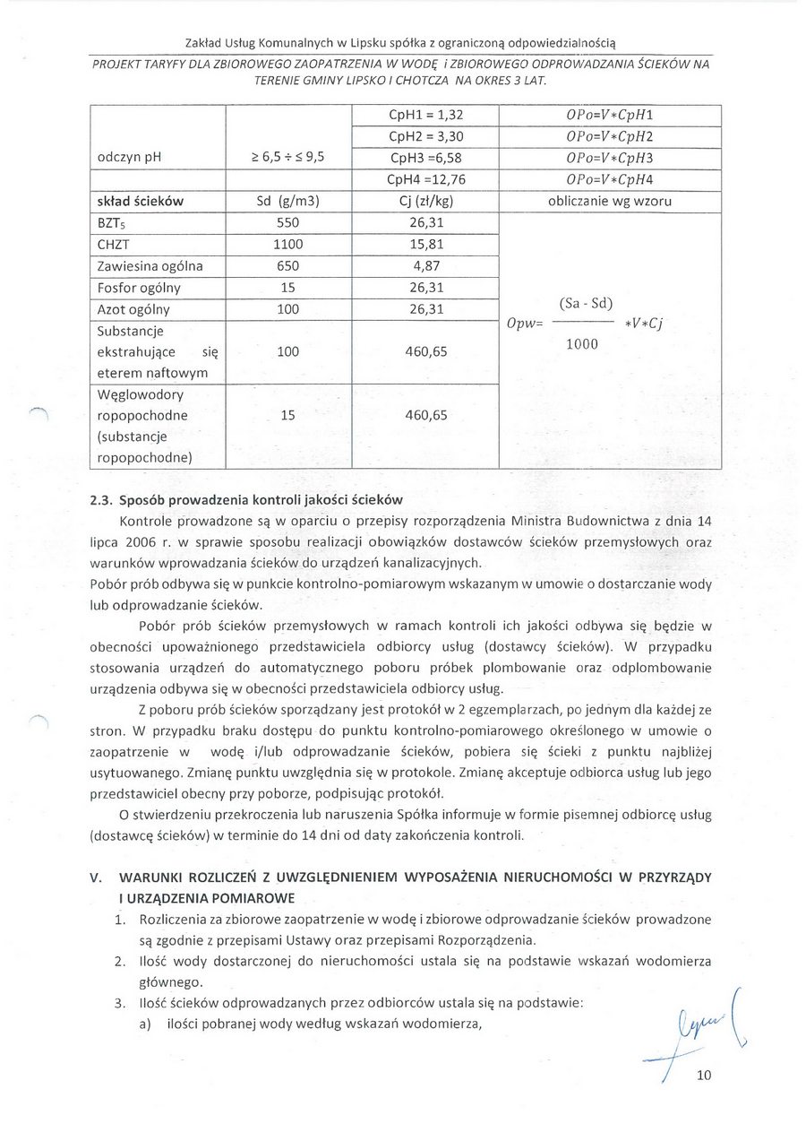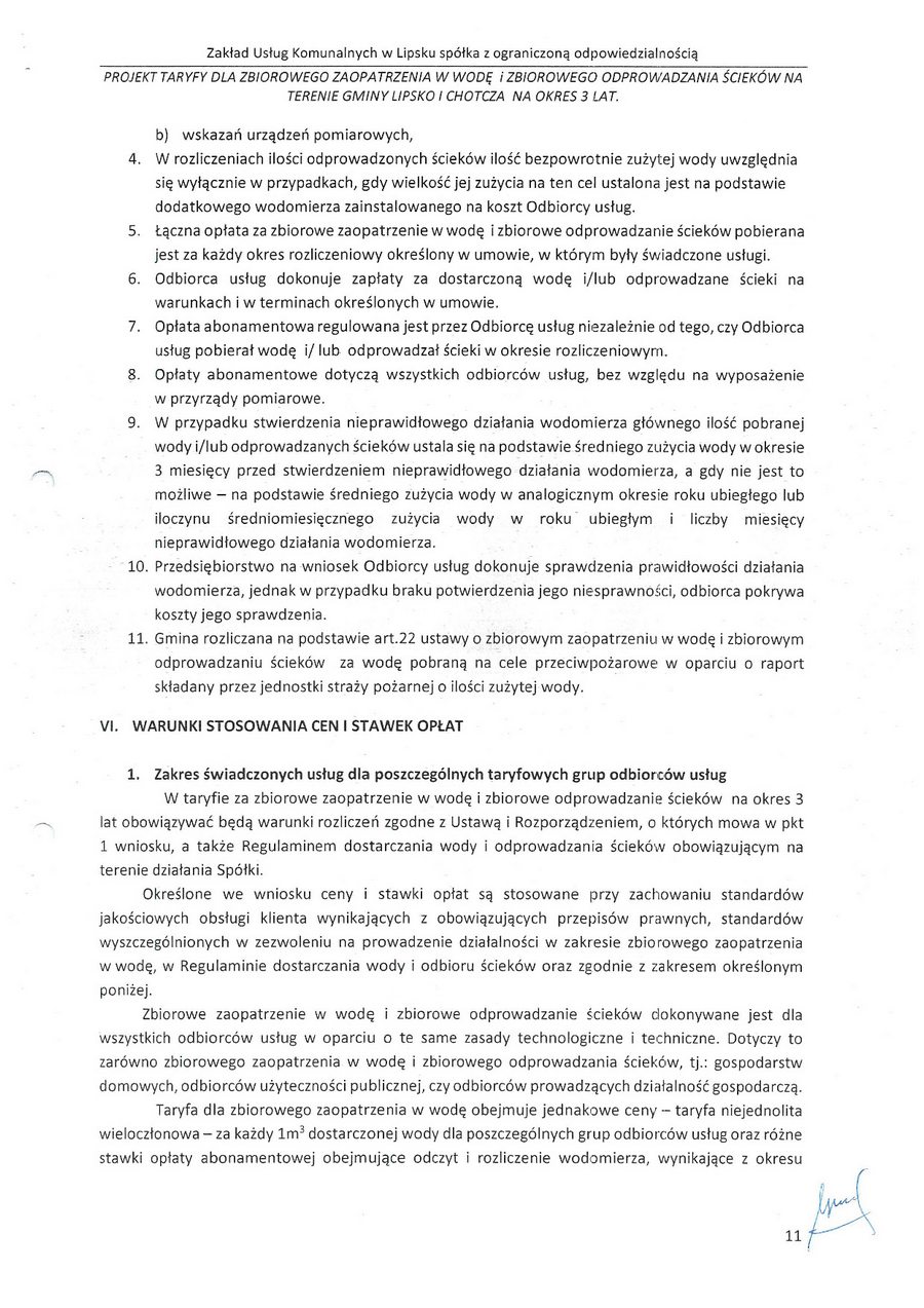 zatwierdzam taryfę za zbiorowe zaopatrzenie w wodę i zbiorowe oprowadzanie ścieków na terenie gminy Lipsko i za zbiorowe zaopatrzenie w wodę w części gminy Chotcza dla miejscowości: Białobrzegi, Baranów, Jarentowskie Pole oraz Kolonia Wola Solecka na okres 3 lat