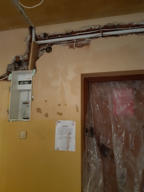 Zakres remontu obejmował: wymianę instalacji elektrycznej wewnętrznej oraz odnowienie tynków wewnętrznych.